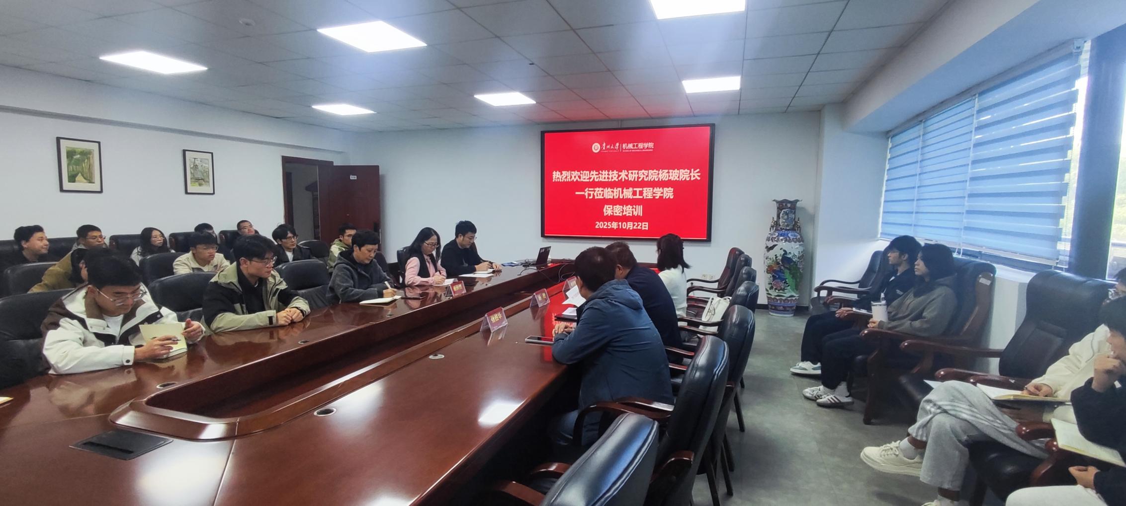 為全面貫徹總體國家安全觀,加強(qiáng)保密法治建設(shè),切實提升師生的保密意識和防范能力,2025年10月22日下午14:30,機(jī)械工程學(xué)院特邀先進(jìn)技術(shù)研究院楊玻院長一行蒞臨學(xué)院,開展了一場主題鮮明、內(nèi)容深刻的保密專題培訓(xùn)。本次培訓(xùn)由機(jī)械工程學(xué)院董蔚然正處級組織員主持,學(xué)院相關(guān)領(lǐng)導(dǎo)、教師及課題組的同學(xué)們參加了本次培訓(xùn)。