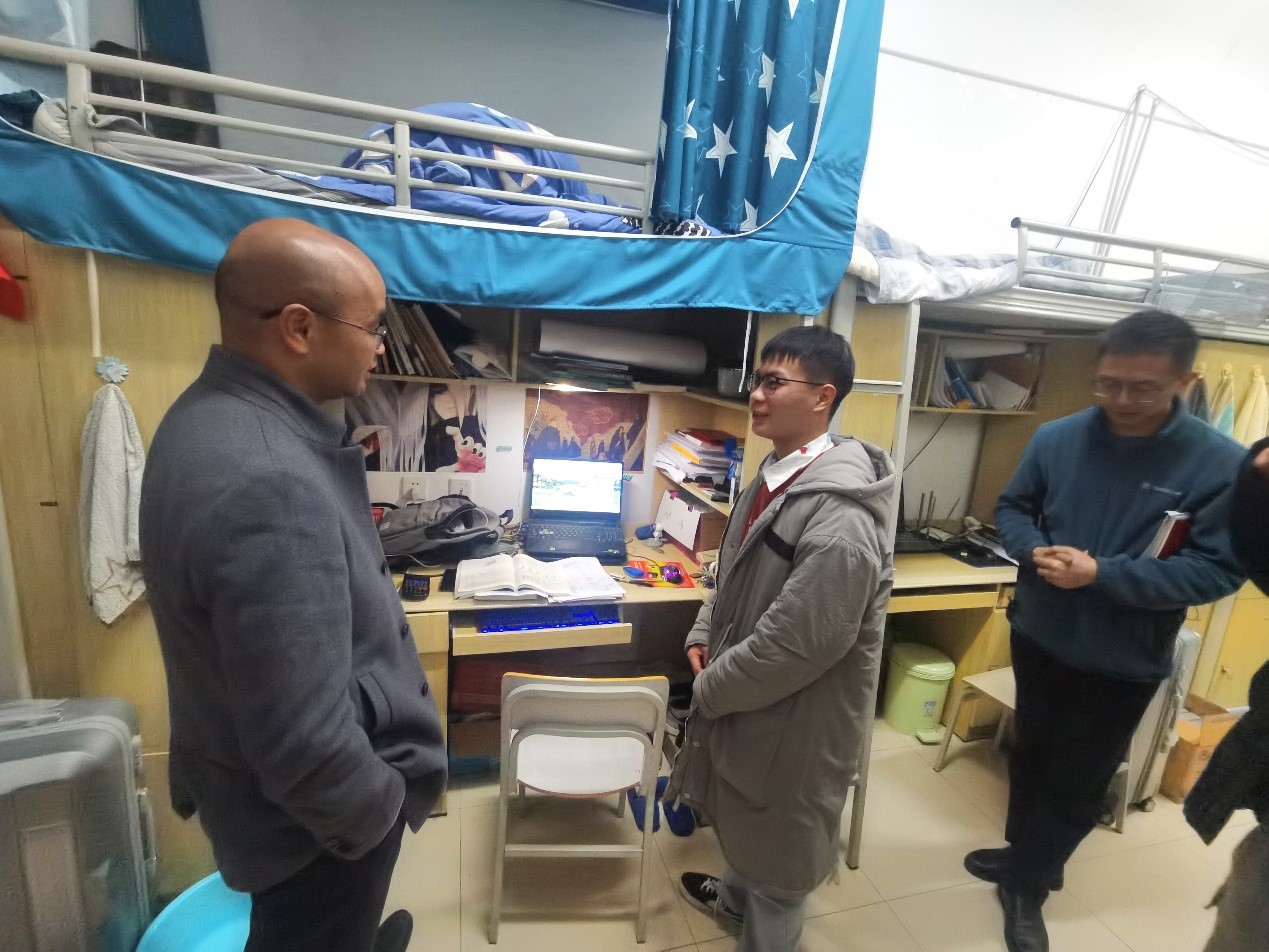 隨后,吳攀查看了聯(lián)系班級的學(xué)生宿舍,關(guān)心同學(xué)們的學(xué)習(xí)生活問題。